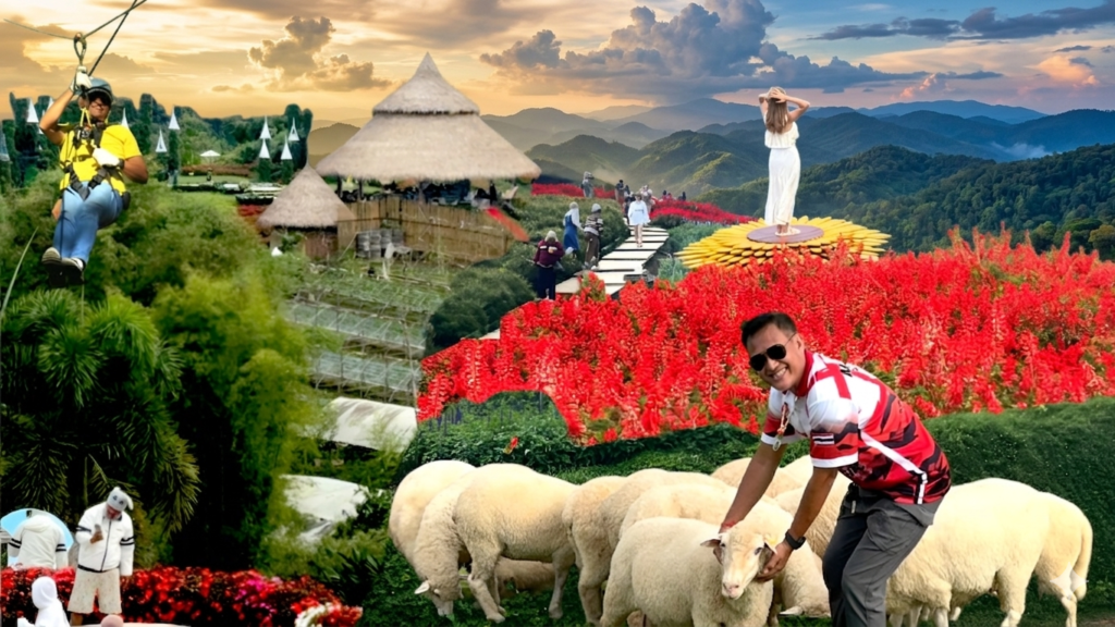 Activities: Feeding (40 baht per tray), taking beautiful photos with the animals and mountain views, a swing area, and photography services are available.